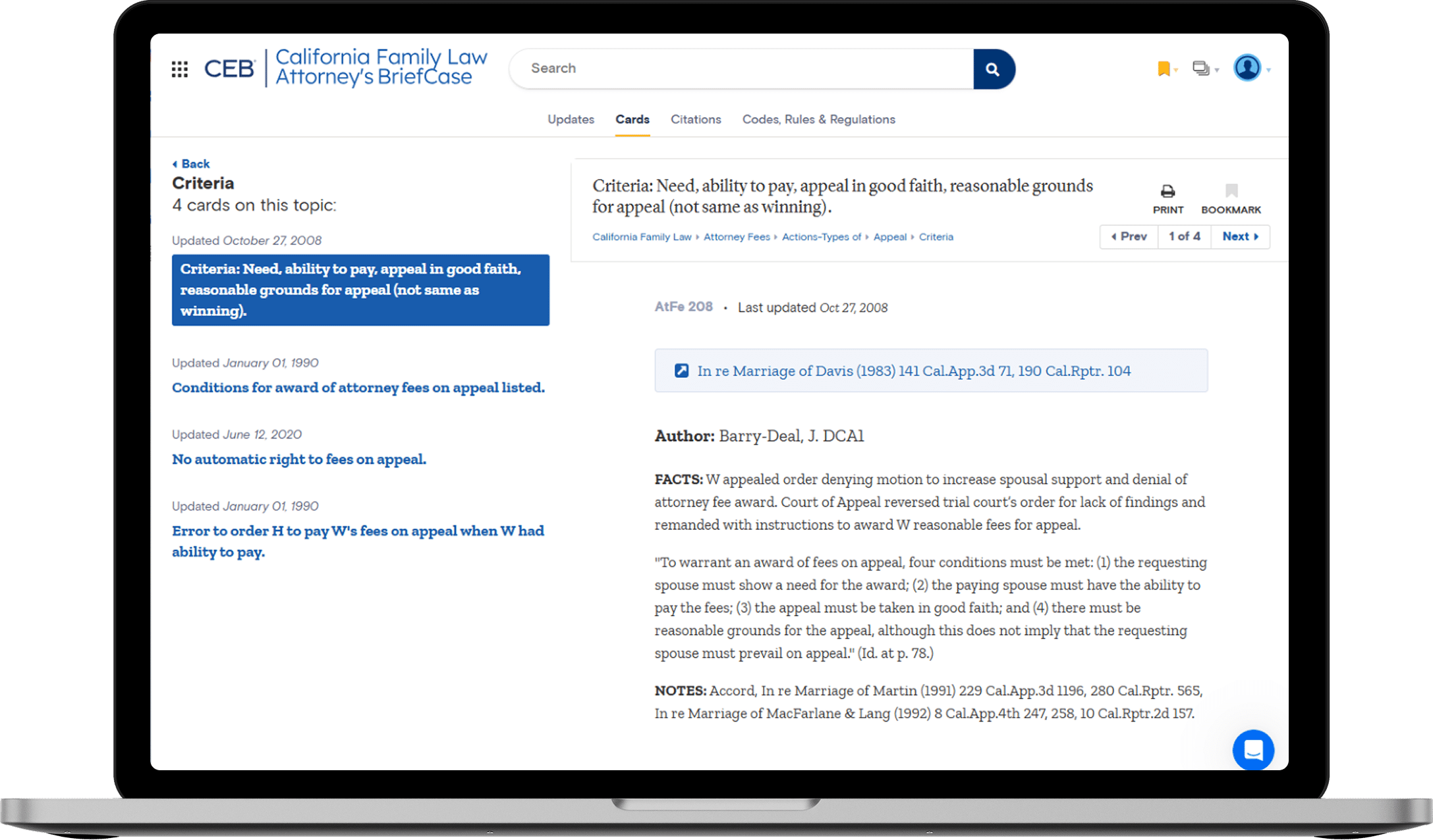 Family Law Hub takes a different approach: it is purpose-built exclusively for California family law, curating only what’s relevant and surfacing continuously updated authority, expert case commentary, and task-oriented workflows that help attorneys move from issue to strategy to execution. Instead of navigating national clutter or static practice guides, practitioners get a focused, integrated workspace that highlights why cases matter, where precedent is unsettled, and how to apply the law efficiently in day-to-day family law work.