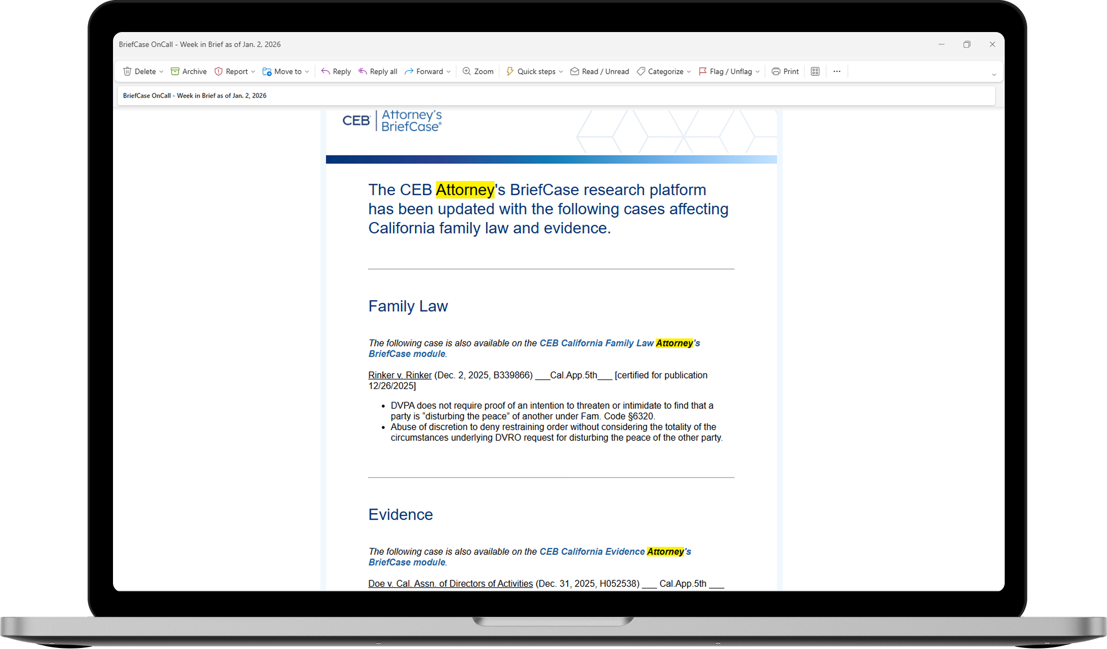 Curated weekly emails covering new cases, appellate developments, and premium news so you never miss a change that could impact your case.