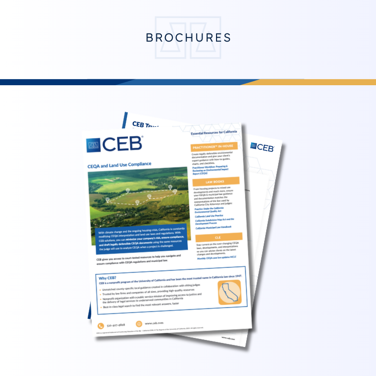 Get actionable guidance from CEB secondary sources and workflows that break down the most complex regulatory issues in the country. Access key titles with information you can’t get anywhere else.