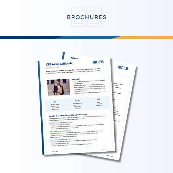Get actionable guidance from CEB secondary sources and workflows that break down the most complex regulatory issues in the country. Access key titles with information you can’t get anywhere else.