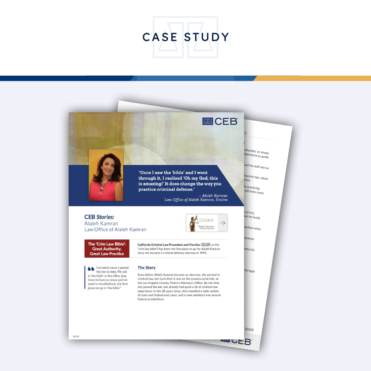 “First of all, it carries great respect. When you quote from it, the court is not going to sit there and question whether you have the law right or not. Because it is so detailed and so up-to-date, you know when you open your mouth you are not just shooting from the hip. You have credibility.” Alaleh Kamran has been a Criminal Defense Attorney for over 30 years (both State and Federal), and is the owner of Law Office of Alaleh Kamran located in Encino California.