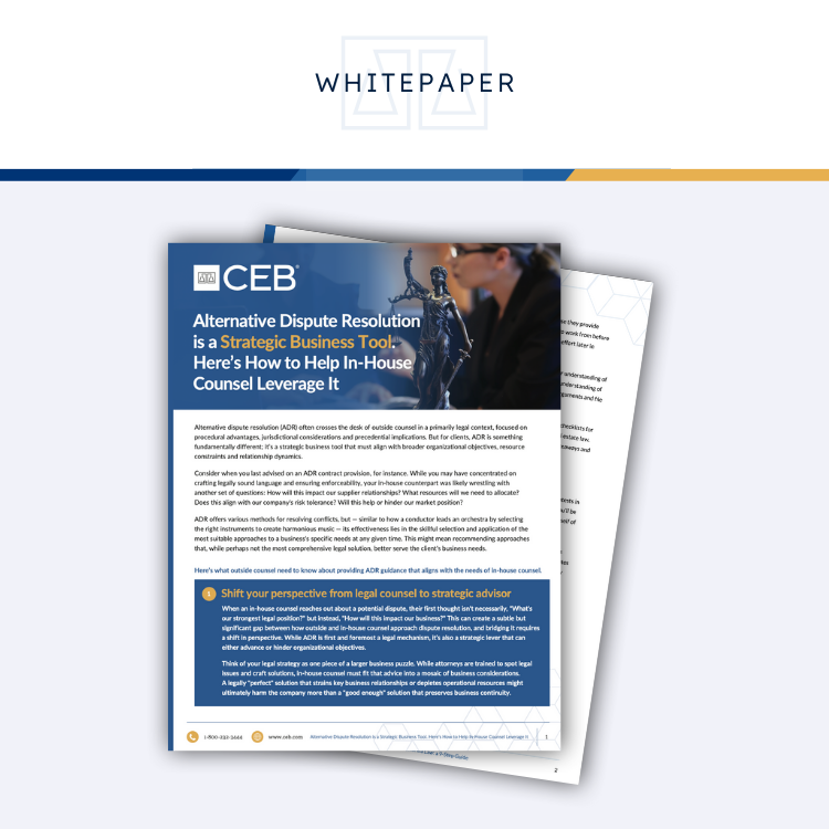 Alternative Dispute Resolution (ADR) is more than a legal process—it’s a critical business tool. Corporate clients rely on outside counsel