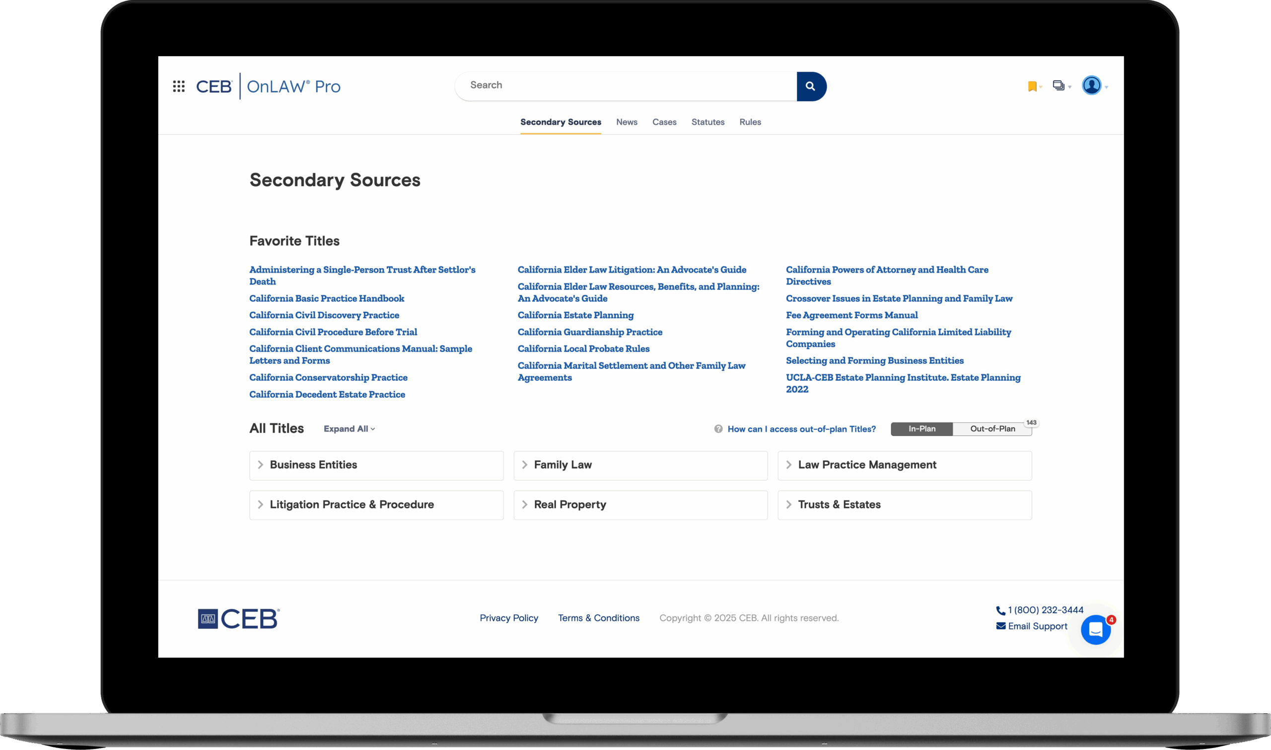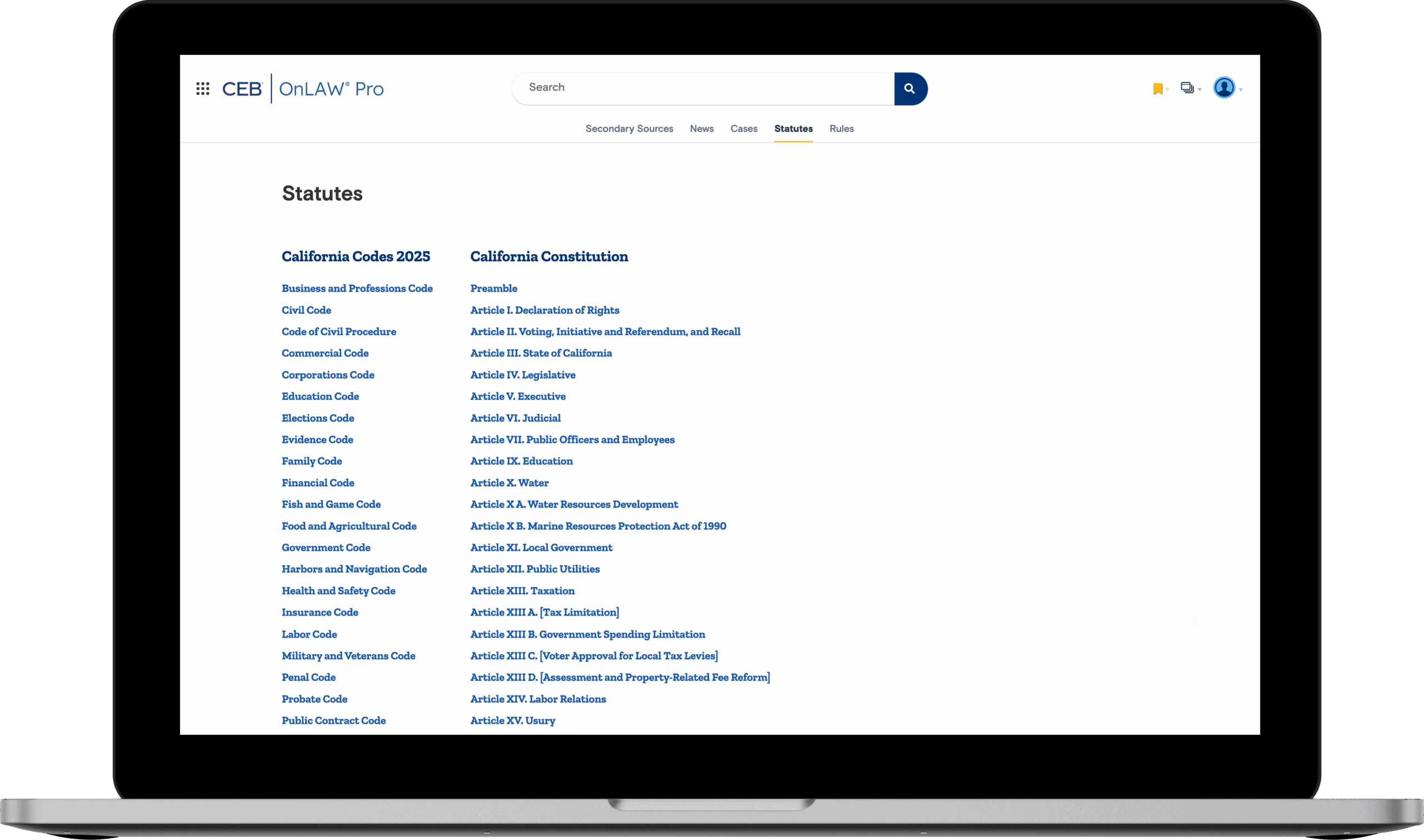 CEB is purpose-built for California legal professionals and trusted by the bench and bar across the state. Our content is developed in partnership with California judges and leading practitioners, ensuring the guidance you rely on is not only current but deeply relevant to your practice. With this latest release, we’re continuing our commitment to delivering intuitive, high quality research tools designed specifically for California law.